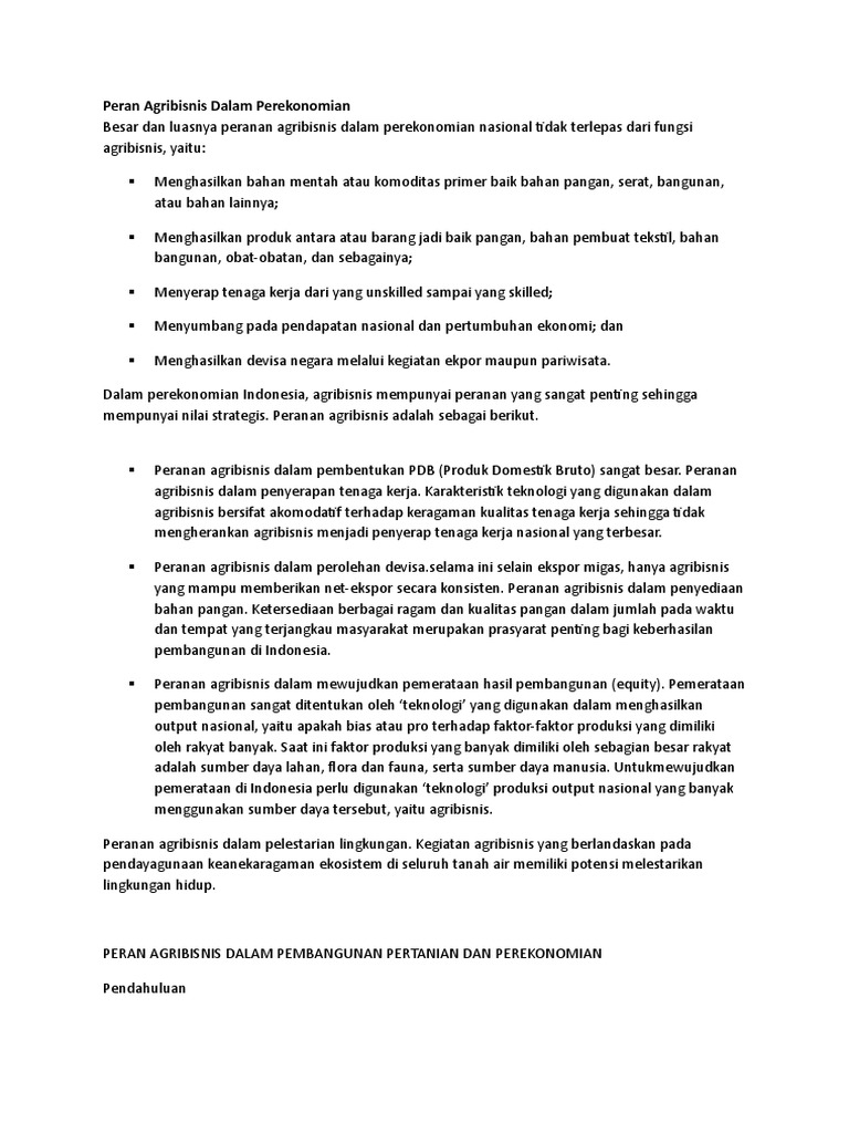 Peran Agribisnis Dalam Perekonomian