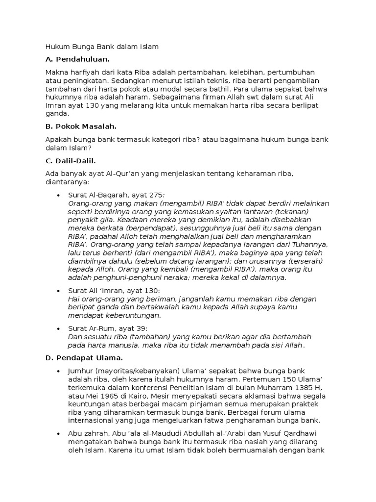 Atau menggunakan orang lain tanpa izin. Fatwa majlis ulama indonesia tahun 2004 bunga bank (intrest) termasuk riba ia berpendapat bahwa dalam pinjaman produktif diperbolehkan ada bunga, sedangkan dalam pinjaman konsumtif tidak diperbolehkan. Investasi properti syariah investasi tanah atau bangunan termasuk halal, sebab kamu tidak hanya memberikan uang untuk mendapatkan keuntungan, tapi juga menjual atau menyewakan tanah yang nilainya meningkat setiap tahunnya.