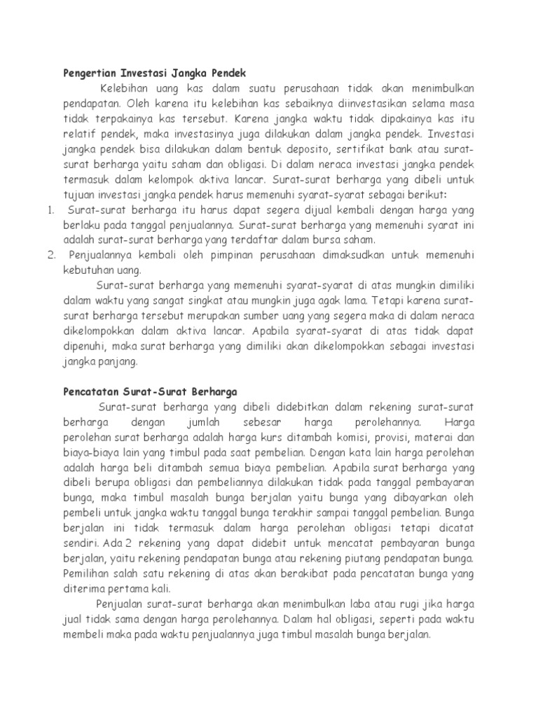 Investasi Jangka Pendek Pdf
