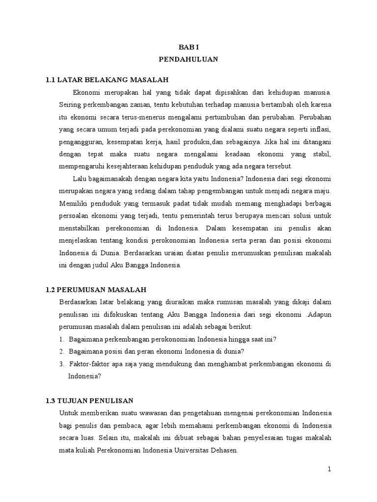 Contoh Makalah Perekonomian Indonesia Saat Ini