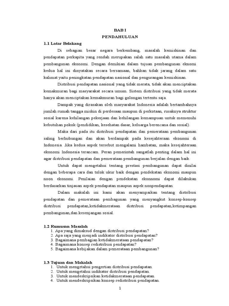 Makalah Perekonomian Indonesia Distribusi Pendapatan