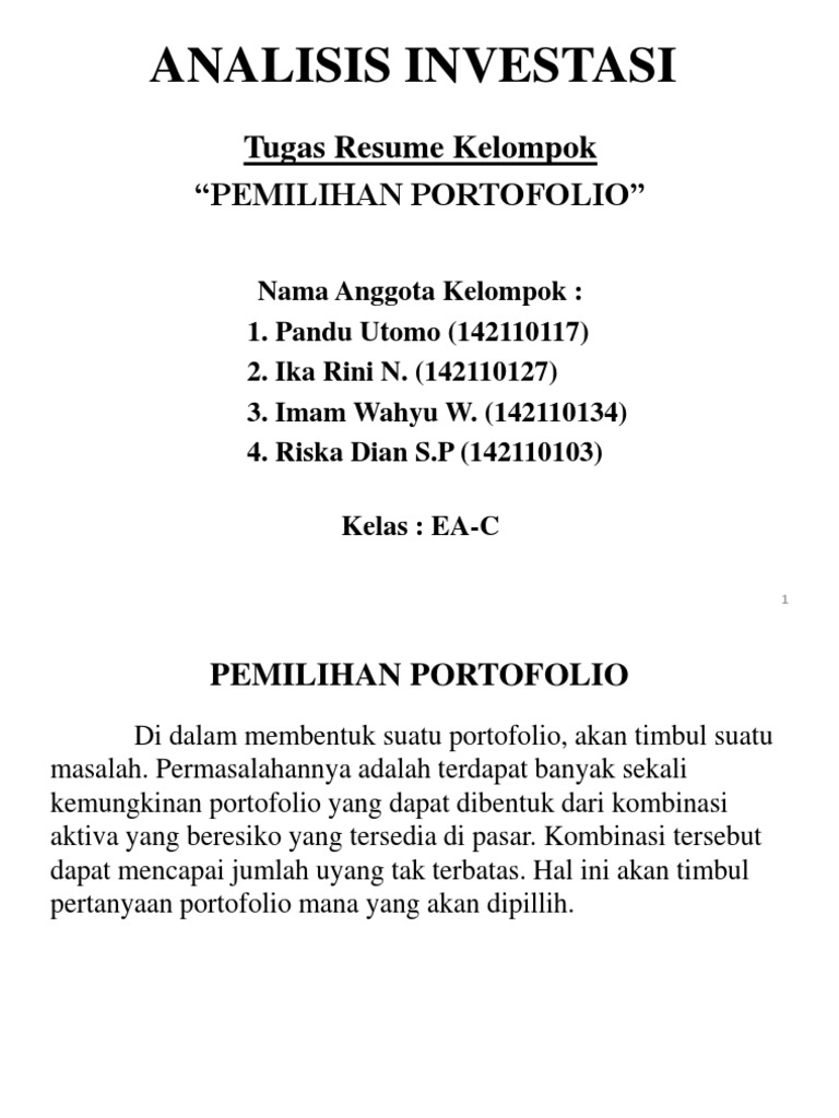 88 PORTOFOLIO INVESTASI PDF, PDF INVESTASI PORTOFOLIO