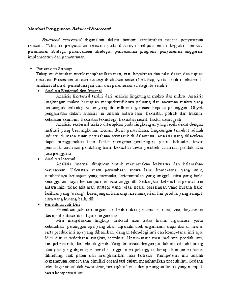 Manfaat Penggunaan Balanced Scorecard