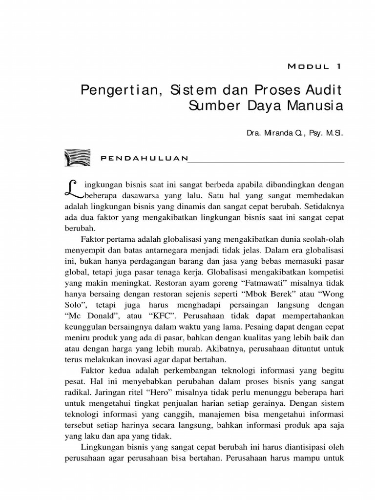 Pengert ian, Si stem dan Proses Audit Sumber Day a Manusi a