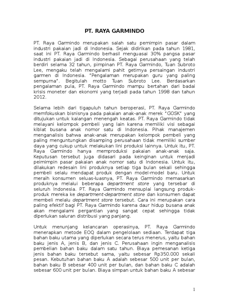TUGAS 1 Pemasaran Operasi EOQ Raya Garmindo